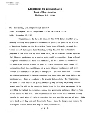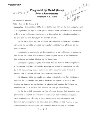 Photographs document how emergency clinics were organized and managed and portray the use of make-shift equipment in the absence of standard medical supplies. In addition, text-based portions of this collection document how disaster planning and recovery procedures in Texas changed after Hurricane Beulah due to information provided by Dr. Ramirez and the medical response team in Starr County to agencies such as the Texas State Department of Health and the Texas Department of Public Safety. Due to growing national attention toward emergency preparedness and disaster response, the portion of the collection devoted to Hurricane Beulah disaster response is of significant historical and informational value.