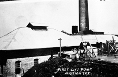 [Mission] Photograph of First Lift Pump (95-158 MAC-3). (1920) Series VI: Archives Alert, 1888–1983. Hidalgo County Historical Commission Collection, ELIBR-0079. The The University of Texas Rio Grande Valley Special Collections and Archives, Edinburg Campus. UTRGV Digital Library. https://scholarworks.utrgv.edu/hidalgohist_aa/261
