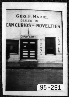 [San Juan] Photograph of George Marie Curio Shop (95-291 MC-2). (1920) Series VI: Archives Alert, 1888–1983. Hidalgo County Historical Commission Collection, ELIBR-0079. The The University of Texas Rio Grande Valley Special Collections and Archives, Edinburg Campus. UTRGV Digital Library. https://scholarworks.utrgv.edu/hidalgohist_aa/276
