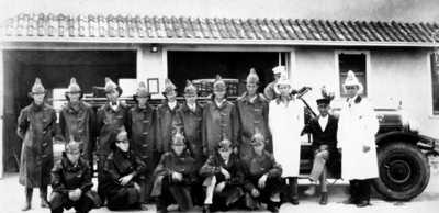 Fire brigade with new Seagrave fire truck.