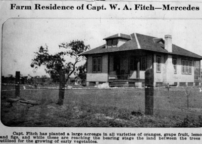 [Mercedes] Photograph of Farm Residence of W.A. Fitch (95-506). (n.d.) Series VI: Archives Alert, 1888–1983. Hidalgo County Historical Commission Collection, ELIBR-0079. The The University of Texas Rio Grande Valley Special Collections and Archives, Edinburg Campus. UTRGV Digital Library. https://scholarworks.utrgv.edu/hidalgohist_aa/357