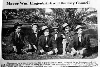 [Mercedes] Photograph of Mayor Wm. Ligenbrink and City Council (95-509). (n.d.) Series VI: Archives Alert, 1888–1983. Hidalgo County Historical Commission Collection, ELIBR-0079. The The University of Texas Rio Grande Valley Special Collections and Archives, Edinburg Campus. UTRGV Digital Library. https://scholarworks.utrgv.edu/hidalgohist_aa/360