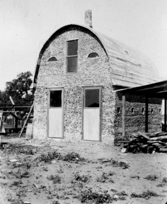 View of the John Wagner's house, a Dutch-barn-style structure that was dubbed the world's smallest museum. Walls were made of pebbles and the roof was a solid concrete oval. Demolished in October, 2021.