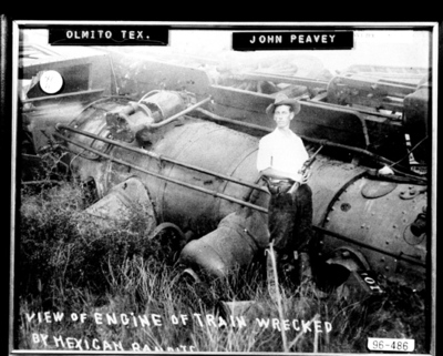 [Olmito] Photograph of John Peavey at Train Wreck (96-486). (n.d.) Series VI: Archives Alert, 1888–1983. Hidalgo County Historical Commission Collection, ELIBR-0079. The University of Texas Rio Grande Valley Special Collections and Archives, Edinburg Campus. UTRGV Digital Library. https://scholarworks.utrgv.edu/hidalgohist_aa/616