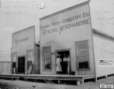 [Donna] Photograph of Cash Grocery Co. General Merchandise (96-498). (1912) Series VI: Archives Alert, 1888–1983. Hidalgo County Historical Commission Collection, ELIBR-0079. The University of Texas Rio Grande Valley Special Collections and Archives, Edinburg Campus. UTRGV Digital Library. https://scholarworks.utrgv.edu/hidalgohist_aa/627
