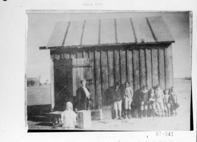 [LaComa] Photograph of Children and Teacher in Front of Schoolhouse (97-041). (1906) Series VI: Archives Alert, 1888–1983. Hidalgo County Historical Commission Collection, ELIBR-0079. The University of Texas Rio Grande Valley Special Collections and Archives, Edinburg Campus. UTRGV Digital Library. https://scholarworks.utrgv.edu/hidalgohist_aa/702