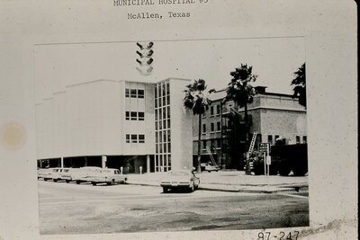 [McAllen] Photograph of Municipal Hospital (97-247). (n.d.) Series VI: Archives Alert, 1888–1983. Hidalgo County Historical Commission Collection, ELIBR-0079. The University of Texas Rio Grande Valley Special Collections and Archives, Edinburg Campus. UTRGV Digital Library. https://scholarworks.utrgv.edu/hidalgohist_aa/706
