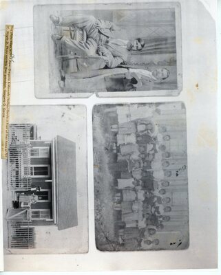 Three photographs scanned to photo paper. A caption is glued to the page, "This photo taken in 1912 shows Gregorio & Manuela (Vallejo) Garcia in front of their home at 721 W. Wright. Photo courtesy of their grandson, Gregorio G. Garcia."