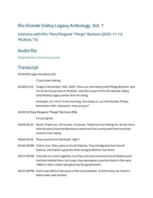 Interview with Mary Margaret “Marge” Bentsen
