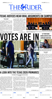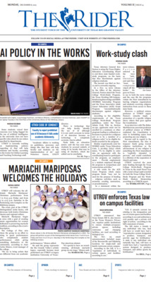 The Rider is the official student newspaper of the University of Texas Rio Grande Valley. The newspaper is widely distributed on campus and off campus in Brownsville and Edinburg, Texas. Views presented are those of writers and do not reflect those of the paper or university.